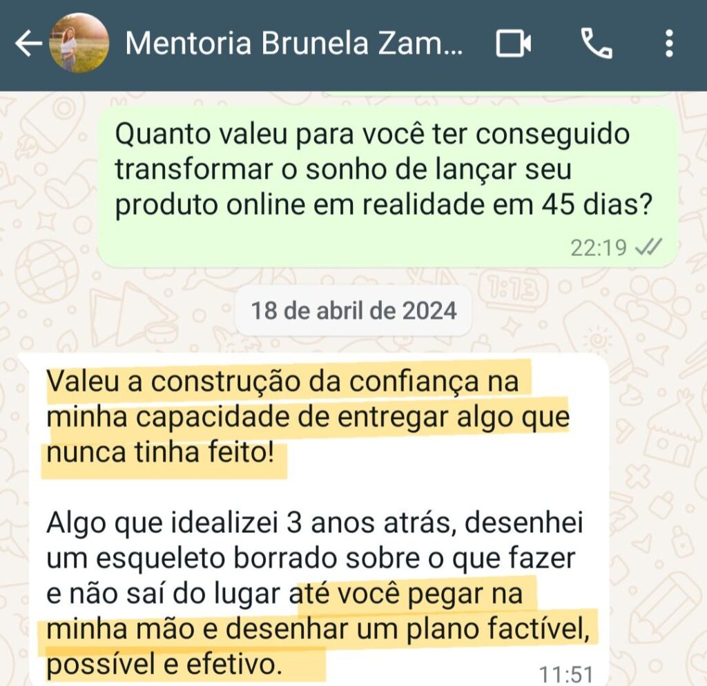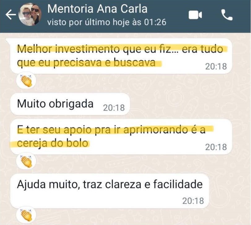 Em nossos encontros quinzenais e também por WhatsApp, para tirar suas dúvidas e ter o direcionamento que você precisa, de segunda a sexta-feira. Você não estará mais sozinha!