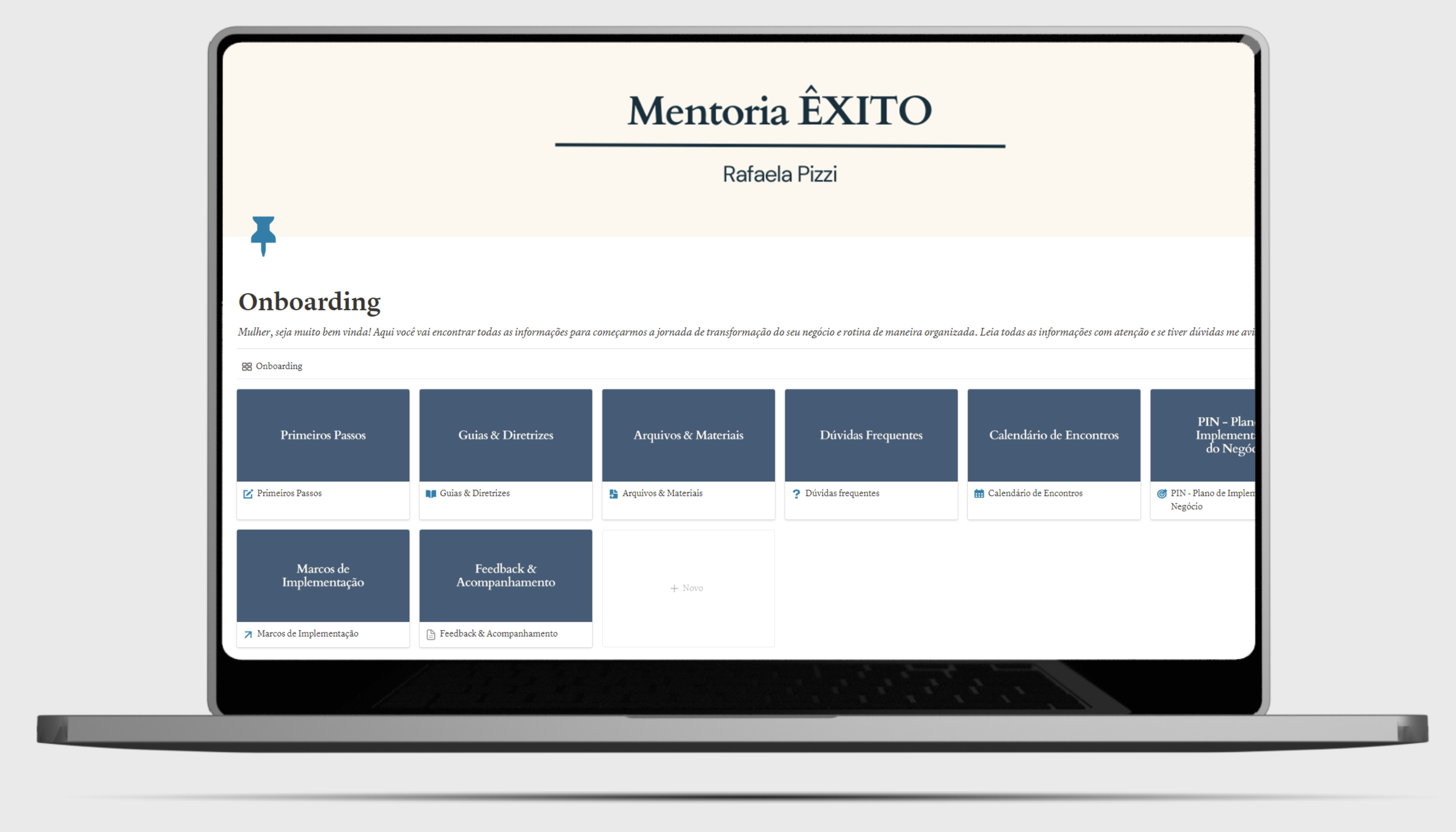 Todas as informações da mentoria organizadas em um só lugar, para você não se sentir perdida durante a nossa jornada.